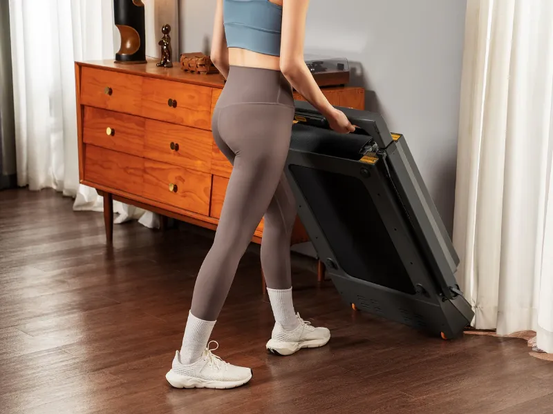 Na je workout klap je de loopband eenvoudig op en berg je ‘m compact op onder je bed of in een kast. Dankzij het 180° vouwsysteem en de wieltjes is verplaatsen geen probleem, wat het ideaal maakt voor kleine woonruimtes.