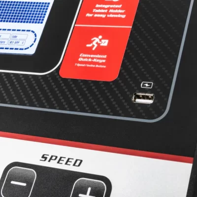 Het 16,5 cm LCD-scherm is eenvoudig en overzichtelijk. Je ziet alles in één oogopslag: snelheid, afstand, tijd, hartslag en calorieën. Via Bluetooth verbind je jouw smartphone of tablet en gebruik je apps als SOLE+, Kinomap of Zwift om virtueel te trainen of je voortgang bij te houden. En met handige extra’s zoals een ventilator, USB-oplader en tablethouder is je workout altijd compleet.